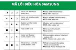 bảng mã lỗi máy lạnh ( điều hòa) samsung cách kiểm tra và sữa chữa
